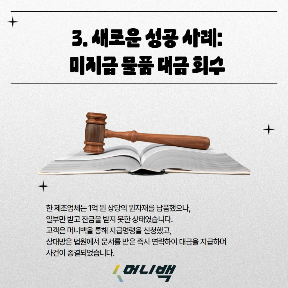 미지급 물품 대금으로 고민 중이라면 머니백의 지급명령 서비스를 선택하세요.