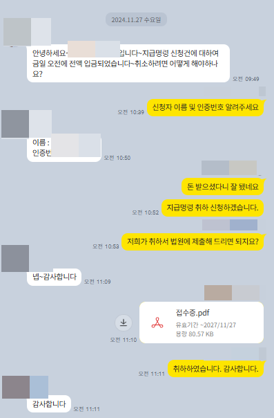 결과적으로 A씨는 2024년 11월 18일 지급명령을 신청한 지 9일 만에 송금된 금액 전액을 돌려받았습니다.