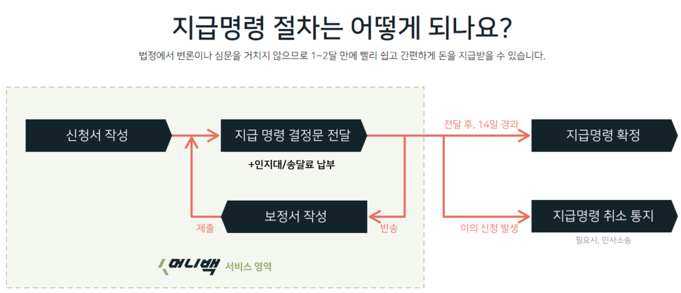 머니백 지급명령 서비스를 통해 여러분도 미수금을 쉽고 빠르게 회수하세요.