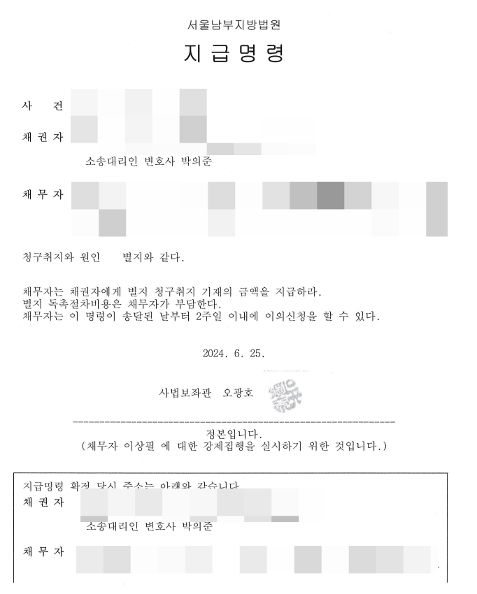 | 대여금 문제, 지급명령으로 해결한 사례 (0) | 2025.03.11 |