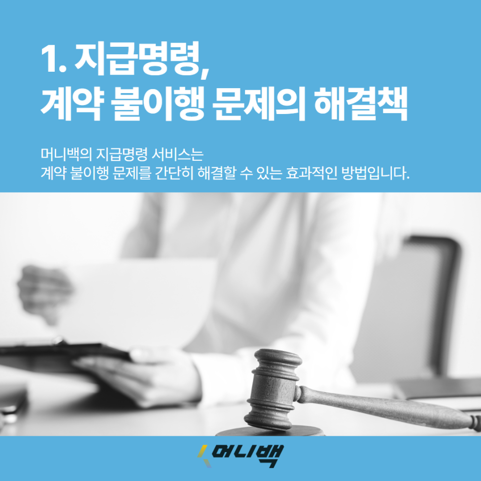 머니백의 지급명령 서비스는 계약 불이행 문제를 간단히 해결할 수 있는 효과적인 방법입니다.