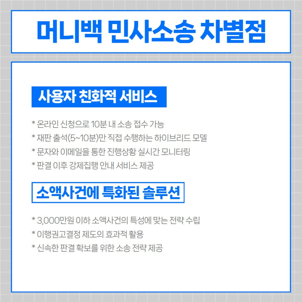 머니백 민사소송 서비스의 차별점