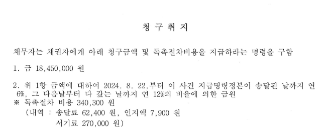 ✅ 비용 포함 청구: 공사대금뿐만 아니라 발생한 지연이자와 송달 비용까지 청구합니다.
