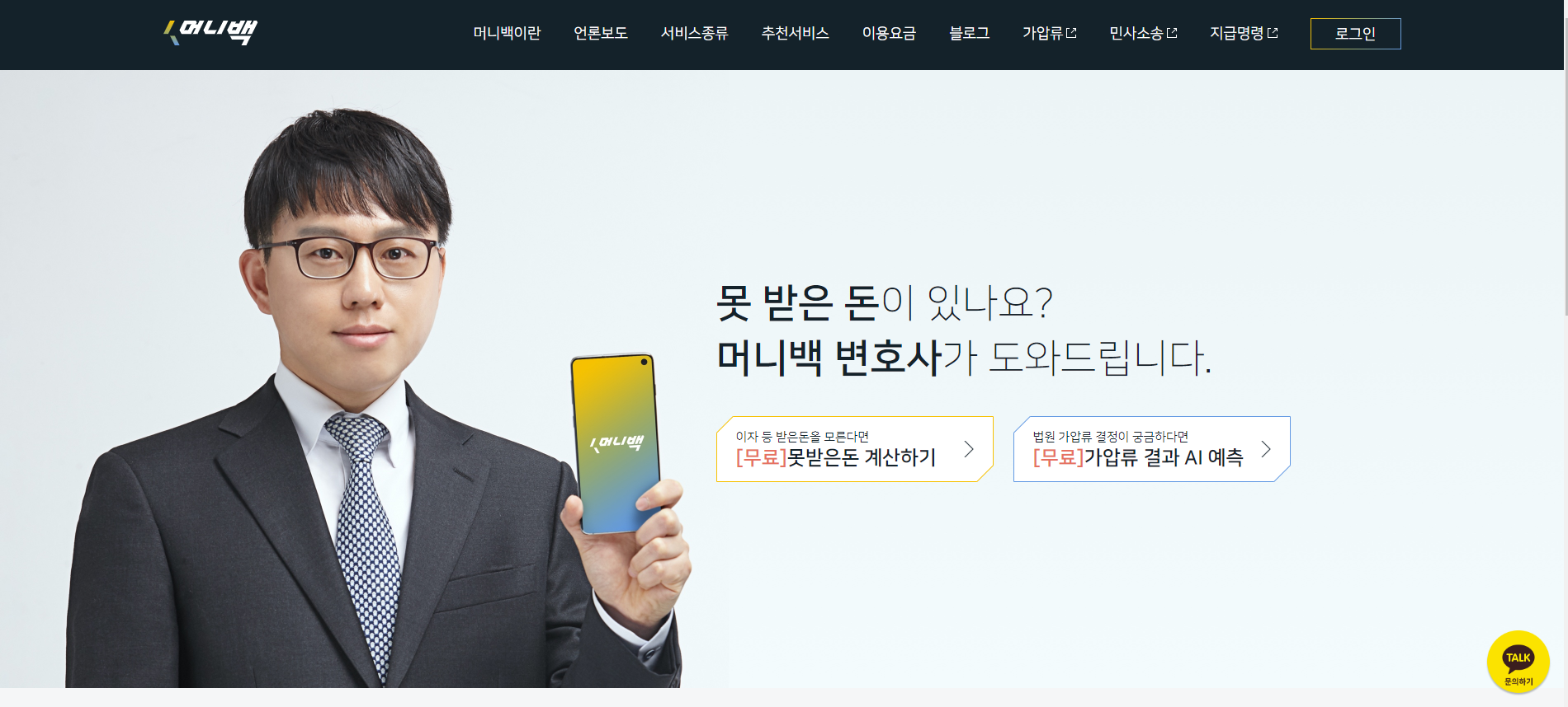 머니백의 프로그램은 내가 신청하는 가압류가 받아들여질지 측정을 해볼 수 있는 AI자동화 프로그램입니다.