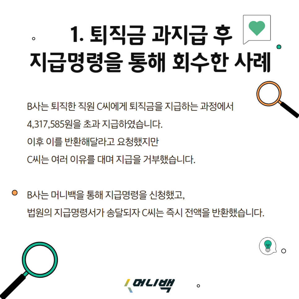 1. 퇴직금 과지급 후 지급명령을 통해 회수한 사례