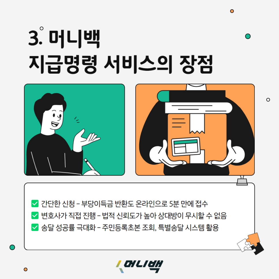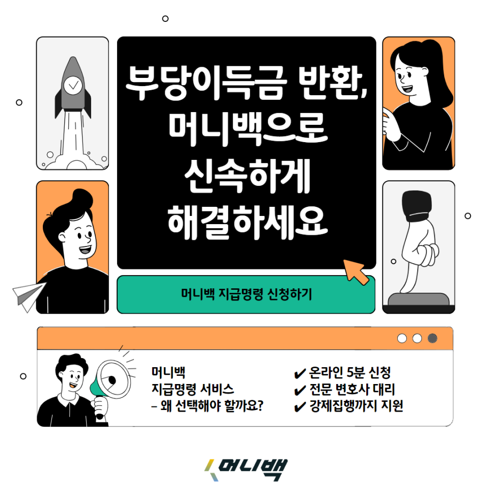 📌 머니백 지급명령 서비스 – 왜 선택해야 할까요?✔ 온라인 5분 신청 – 복잡한 서류 없이 간편하게 진행