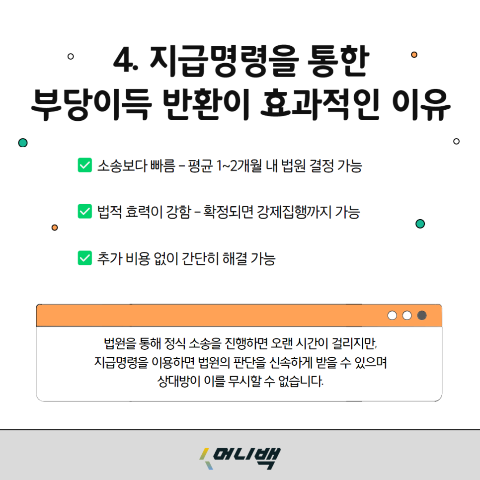 4. 지급명령을 통한 부당이득 반환이 효과적인 이유